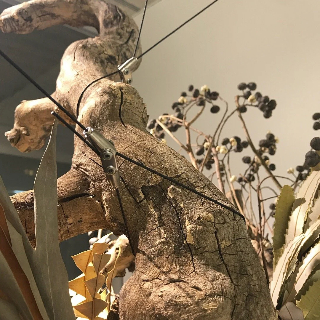 I was in charge of the Window Display at the unveiling of Arakawa Giken Kogyo's Omotesando showroom "TIERS". Based on the philosophy of "creating what doesn't exist," we wanted to create something that is not usually hung! The showroom was composed entirely of "living creatures". The roots of the mulberry tree were used to express the image of a tree that is firmly grounded in the earth, but will be more dynamic in the future, and flowers were used to add color. Although the work was quite unstable, we tried to make the most of the characteristics of "ARAKAWAGRIP," which can maintain its balance beautifully from any direction throughout 360 degrees.
